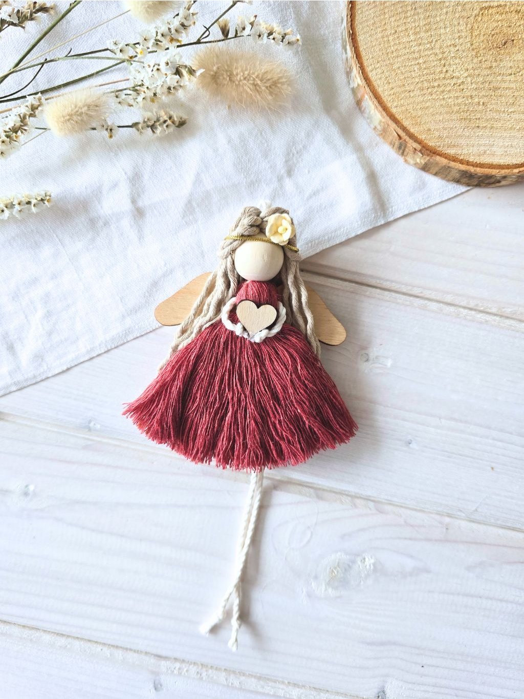 Macrame Andělka je krás v šatech v různých barvách je krásná a originální ozdoba, která přináší radost do vašeho domova během celého roku.