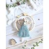 Velikost: průměr kruhu 14 cm, délka cca 22 cm bez poutka (až na výjimky, které jsou delší)Složení: 100% recyklovaná bavlna, dřevěný kruh, dřevěný korálek, dřevěné výřezy, lurexová nit, papírové kytičky