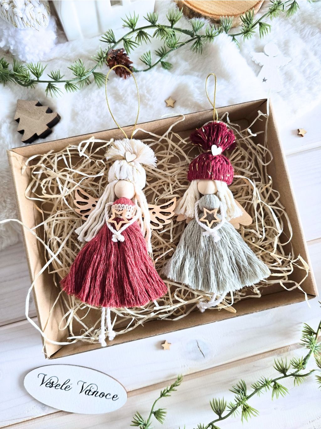 Sada dvou macrame andělek